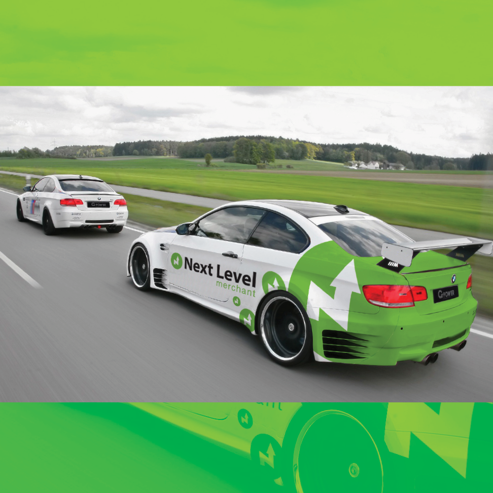 In order to promote Next Level Merchant’s high-speed processing, we wrapped a BMW racecar! From concept to creation.